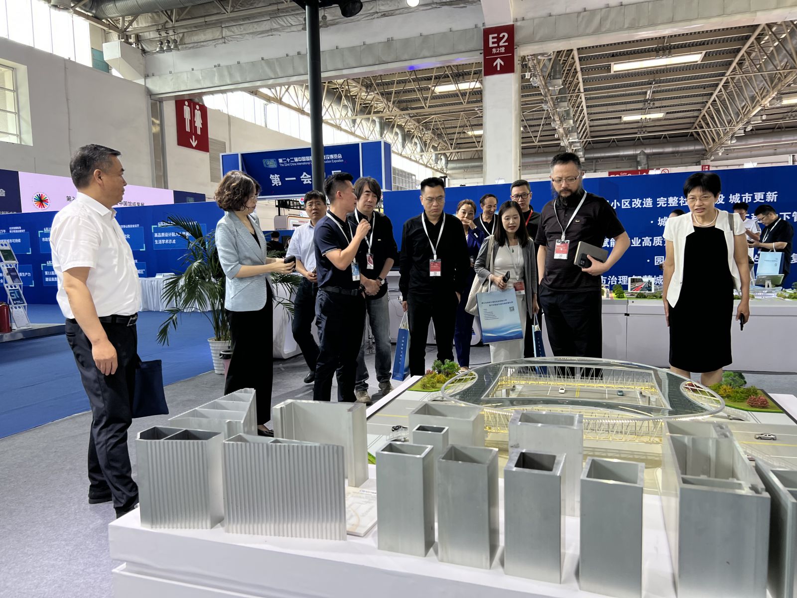 ??中國住房和城鄉建設部副部長秦海翔攜中國建筑文化中心黨委書記、主任尚少巖、中國建筑文中心副主任李吉祥、北京規劃和自然資源委員會二級巡視員陶志紅,建筑節能與科技司司長陳少鵬、北京市住建委主任郭寧等蒞臨展位參觀。各級領導對鋁合金天橋在城市發展、低碳建設以及科技應用等領域所發揮的重要作用給予了肯定,表達了用景觀天橋提升城市品味的殷切期望,囑咐我們要堅持“人民城市,幸福家園”的主旨走景觀天橋的道路,參與到城市的建設中去,在支持國家工業產業轉型政策的同時也為城市帶來更美麗的風景。