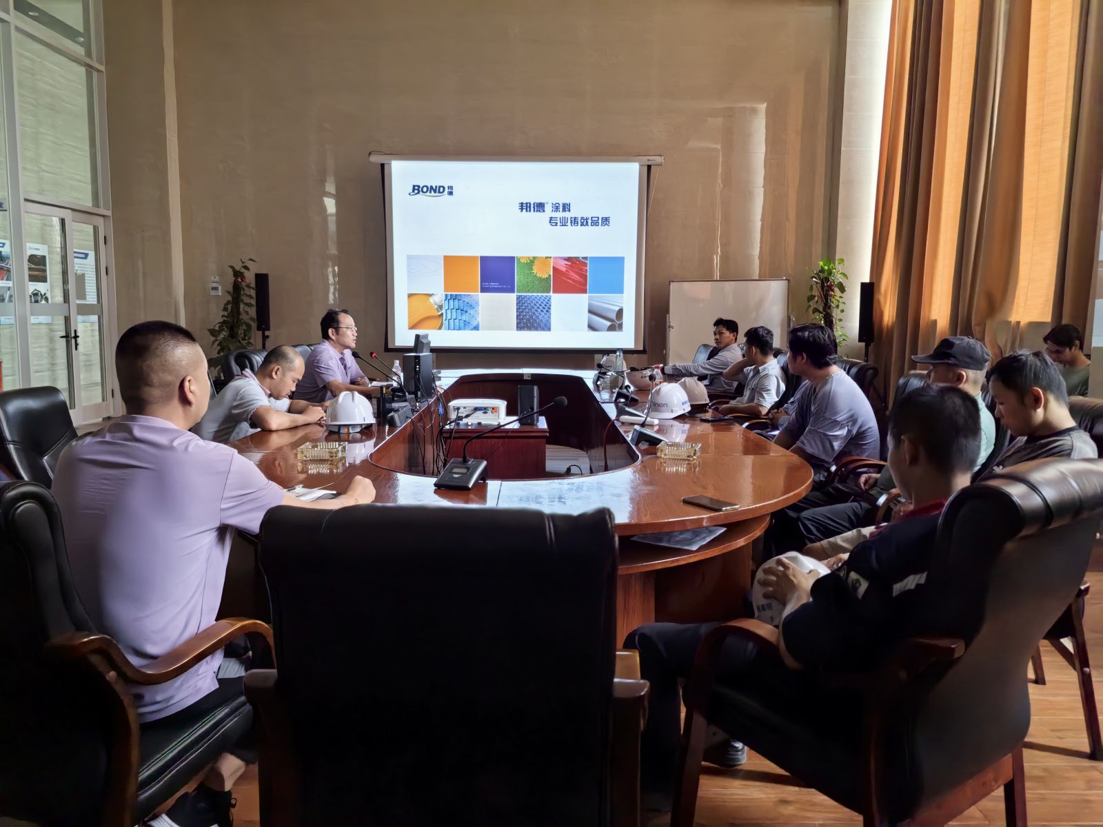 ? 培訓過程中,講師們不僅在課堂上授課,還與參訓人員就粉末使用設備、生產環境要求以及使用過程中的異常處理等關鍵問題進行了深入的討論和交流,包括涂裝質量因素、上粉率、涂層色差等。此外,培訓講師和技術人員深入生產一線,與技術人員分享經驗,指導技術改進。